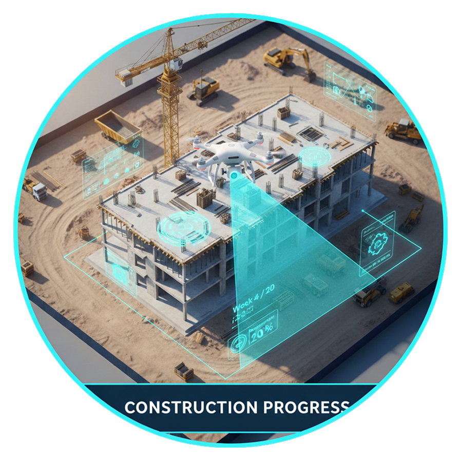 Aerial monitoring of construction sites to track project progress, site logistics, and compliance.