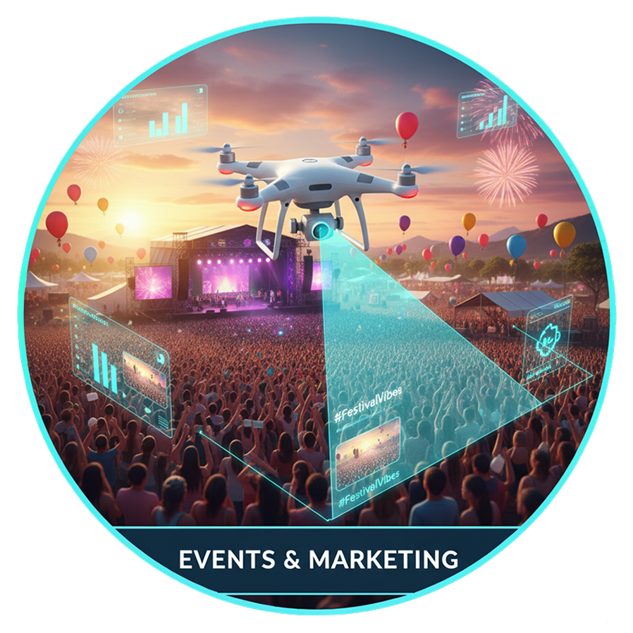 Capture stunning aerial views of outdoor events, car shows, weddings, or community.